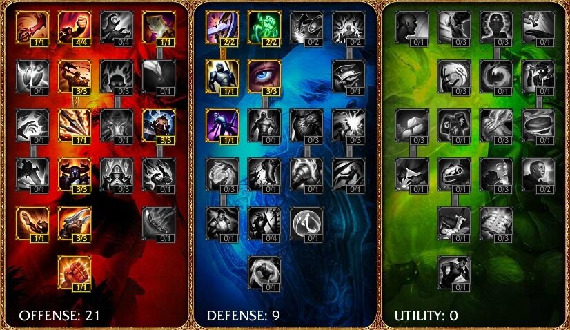21 очко вкладываем в ветку «Offense», для максимального повышения физического урона, а 9 очков – в ветку «Defense», чтобы немного увеличить нашу выживаемость.