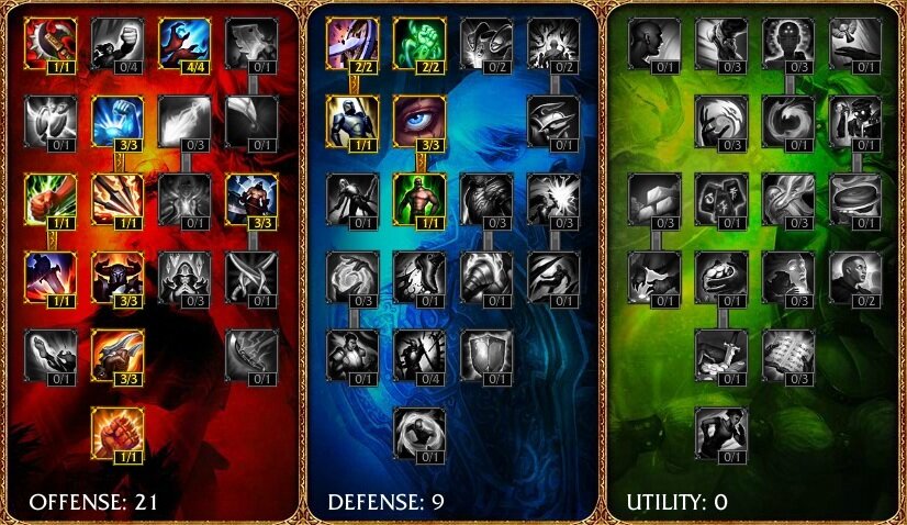 21 очко вкладываем в ветку «Offense», для максимального повышения физического урона, а 9 очков в ветку «Defense», чтобы немного увеличить нашу выживаемость.